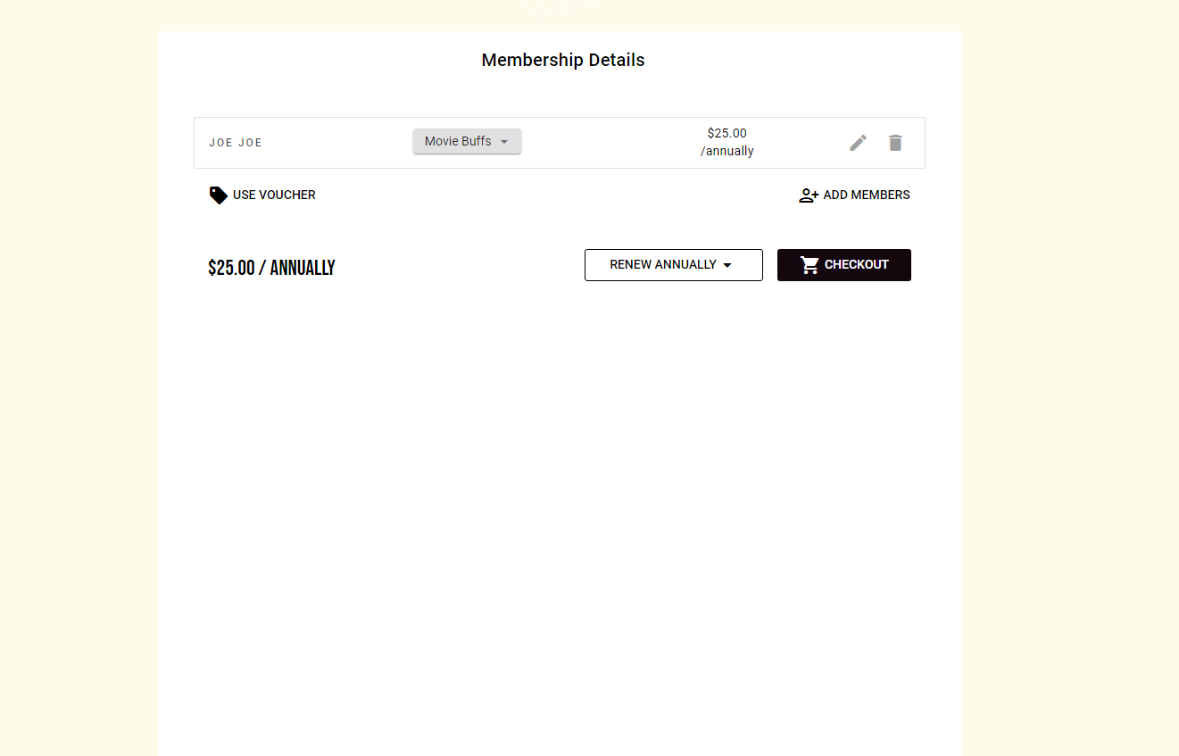 Out of the box, the Movie Buff Membership is going to, out-of-convenience, assume you'll want to keep your membership year after year forever and ever and constantly buy discounted ice creams. With that it'll automatically take whatever credit card or payment methods you have saved on your account and take payment every 12 months. If that's something you'd rather not do, that's totally understandable and easy to turn off.