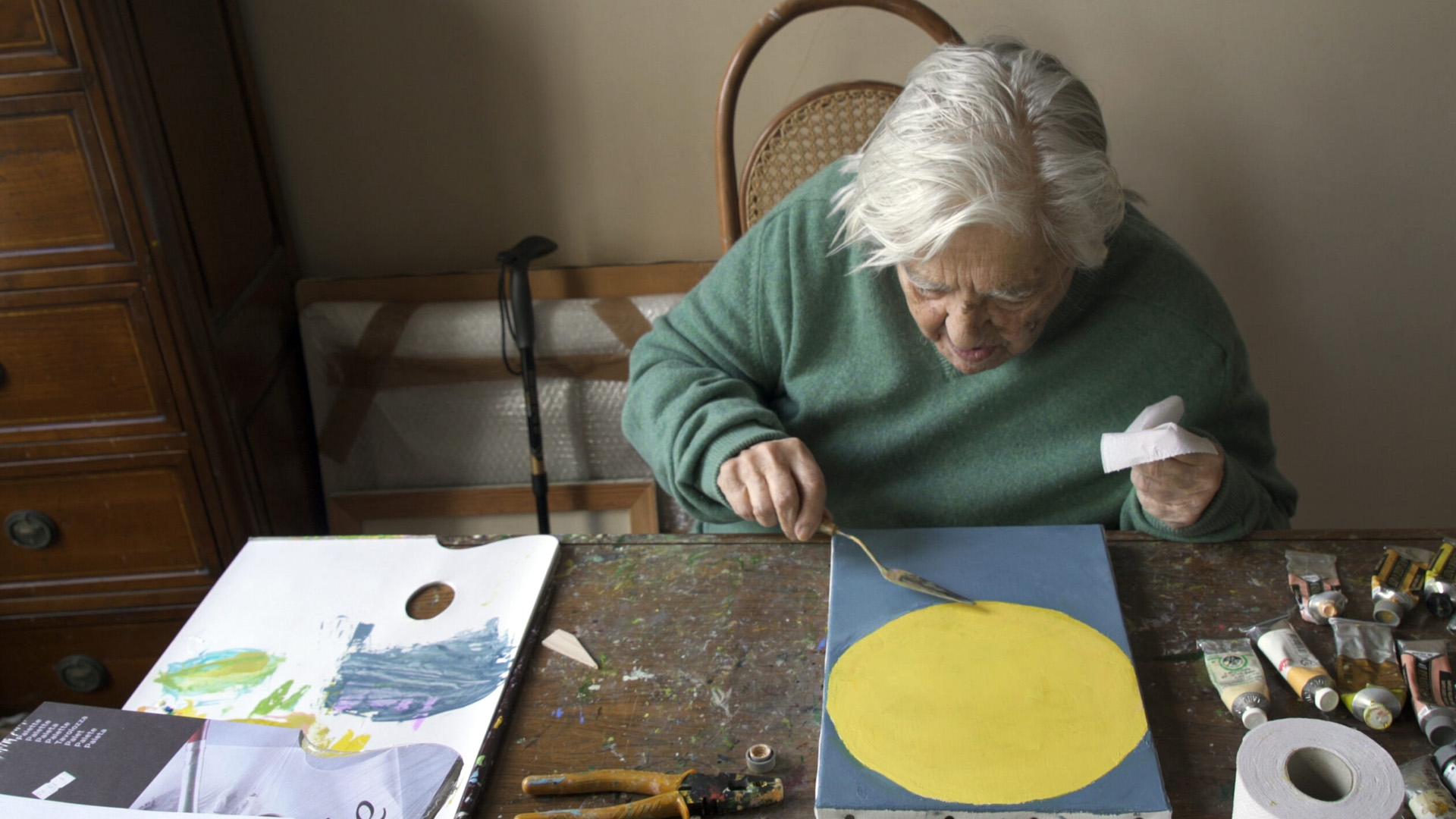This expressionistic portrait of the great Etel Adnan (b. Beirut, 1925) documents the artist and poet over the last five years of her life. Adnan is working without ego, asking, what does it mean to be alive, to live through catastrophe, to experience time? Close to Adnan in her daily life, in her studio, in her works, and in the natural world essential to her aesthetic and philosophic understanding, the film’s form creates an experience of Adnan’s radical quality of attention.DocumentaryPT1H10ME2026-05-07Marie Valentine Regan
