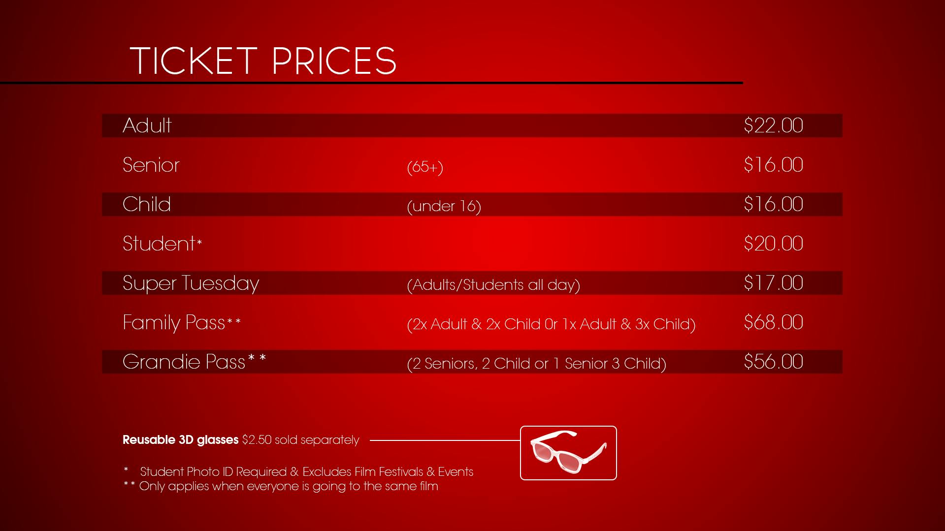 Credit Card bookings can be made over the phone to reserve your seat - we cannot hold seats without payment. It is recommended you book your seats in advance during in the School Holiday period to save disappointment.